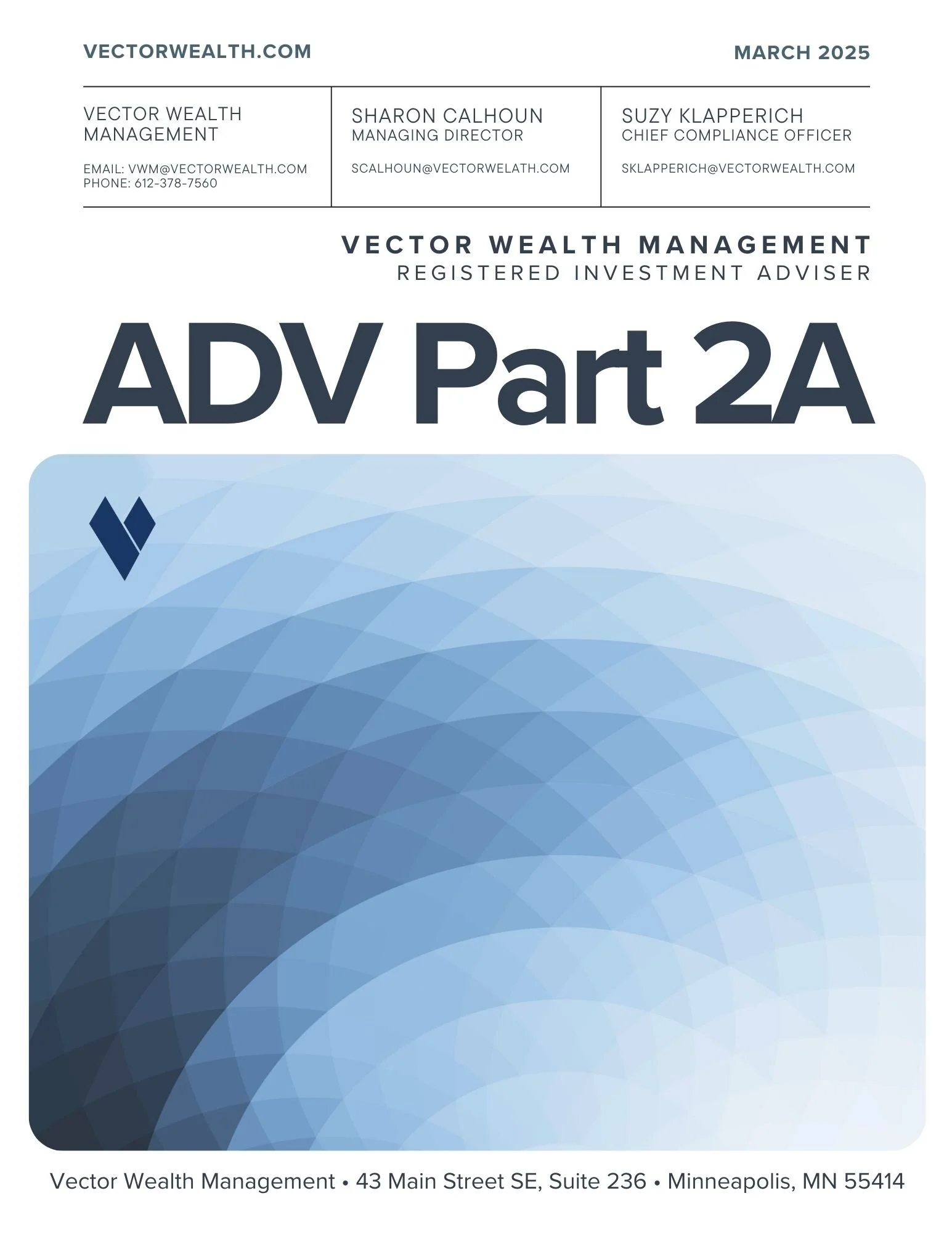 Please notify us immediately regarding any changes in your situation that may affect your financial condition, investment objectives or risk tolerance. Thank you for placing your trust and confidence in Vector.